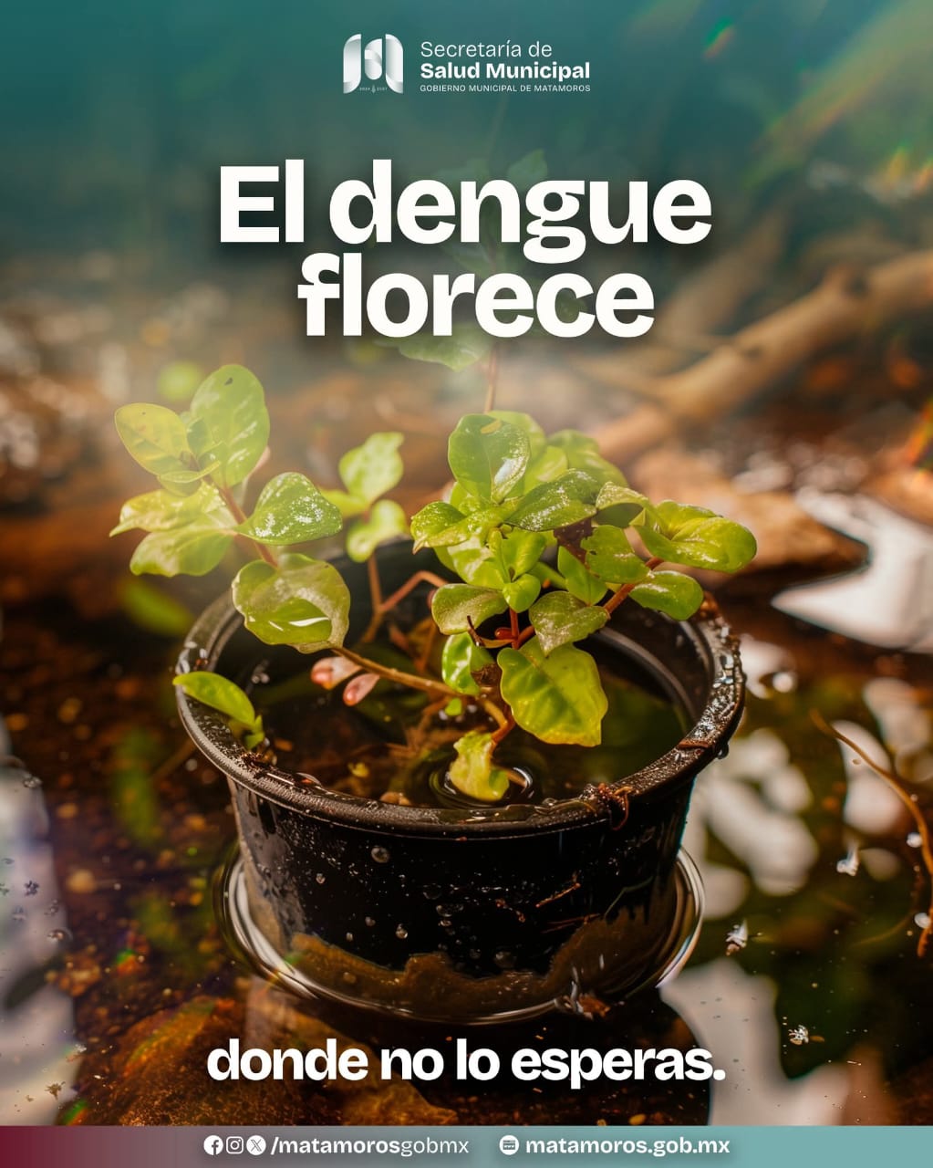 Matamoros, Tamaulipas. – El Gobierno Municipal que encabeza Beto Granados, a través de la Secretaría de Salud Municipal, hace un llamado a la ciudadanía a tomar medidas preventivas en sus hogares para evitar la proliferación del mosquito transmisor del dengue. Esta enfermedad, que representa un riesgo importante para la salud pública, puede prevenirse con acciones simples pero efectivas. Las autoridades municipales advierten que el peligro muchas veces se encuentra en los lugares más pequeños, como en las macetas con agua acumulada, charcos en patios, bebederos de mascotas…