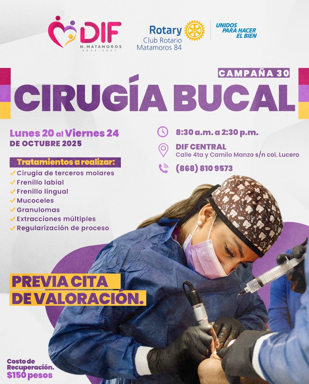 Leer más*DIF Matamoros y Club Rotario lanzan Campaña de Cirugía Bucal para la comunidad*
