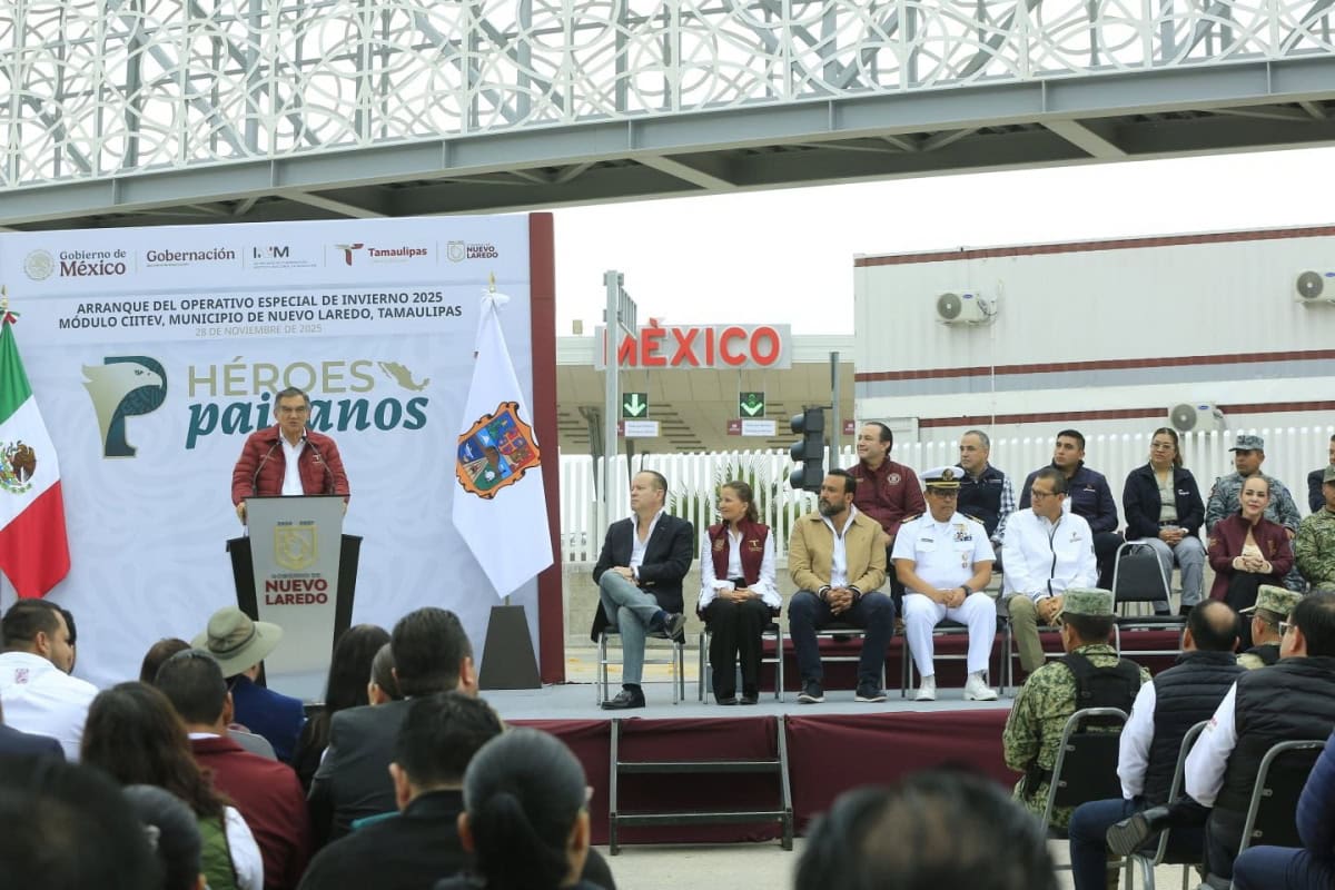-Autoridades brindarán seguridad y servicios a las y los mexicanos que pasarán por la frontera tamaulipeca 305-2025 Noviembre 28 de 2025 Nuevo Laredo, Tamaulipas.- Tamaulipas está listo y preparado para recibir como se merecen a las y los paisanos que regresan a nuestro país en estas fiestas decembrinas y nos sumamos al reconocimiento, que siempre ha expresado para ellos, la presidenta Claudia Sheinbaum afirmó el gobernador Américo Villarreal Anaya. Al dar el banderazo de inicio del Operativo Especial Invierno 2025 del…
