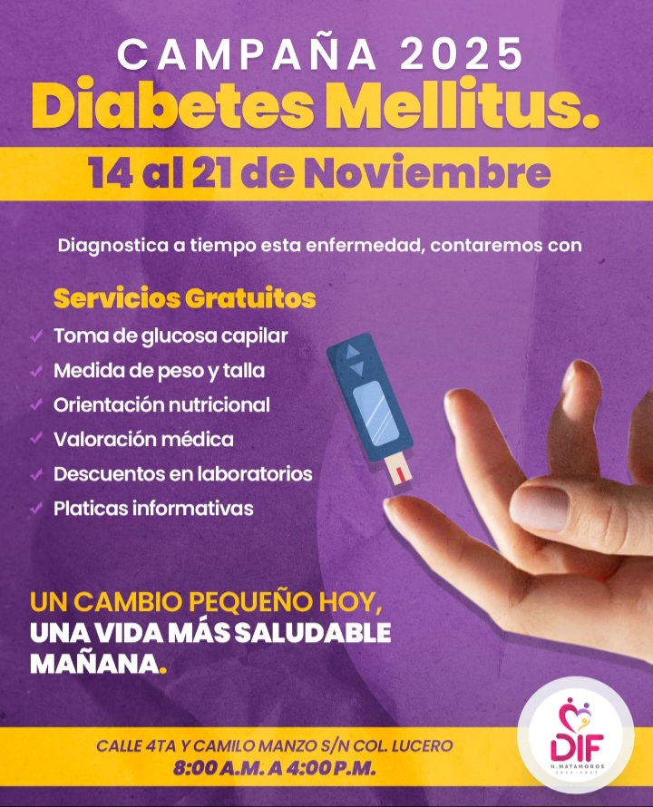 Leer más*Impulsa DIF Matamoros campaña de prevención y detección en el marco del Día Mundial de la Diabetes*