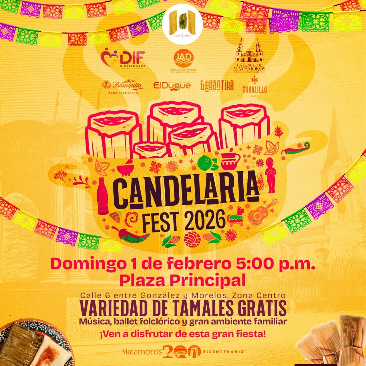 01 de febrero de 2026   H. Matamoros, Tamaulipas.- La Plaza Principal será sede este domingo del Candelaria Fest 2026, una celebración que promueve la preservación de las tradiciones, el fortalecimiento de la convivencia familiar y el impulso a la identidad cultural de Matamoros, en un ambiente de orden, participación y sana recreación.   El alcalde de Matamoros, Beto Granados, destacó que este festival representa un espacio de encuentro para las familias matamorenses, donde se fomenta la unión comunitaria y el respeto por las costumbres, al tiempo que se…