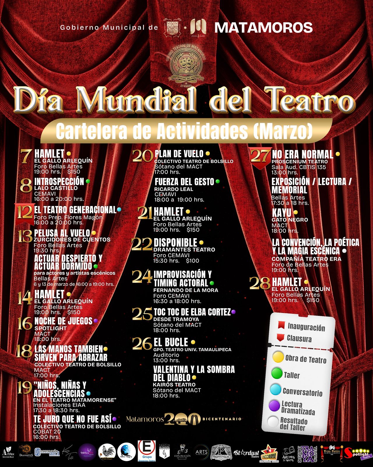 _Celebran el Día Mundial del Teatro_ 13 de marzo de 2026 H. Matamoros, Tamaulipas.– En el marco de la conmemoración del Día Mundial del Teatro, y con el respaldo del alcalde Beto Granados, el gremio teatral de Matamoros organiza dos semanas de actividades culturales dirigidas a toda la comunidad. Estas se llevarán a cabo en distintas sedes de la ciudad, teniendo como escenario principal el Foro de Bellas Artes. La regidora Alba Viridiana Villasana Aguilar, presidenta de la Comisión de Cultura en el Cabildo, informó que el…