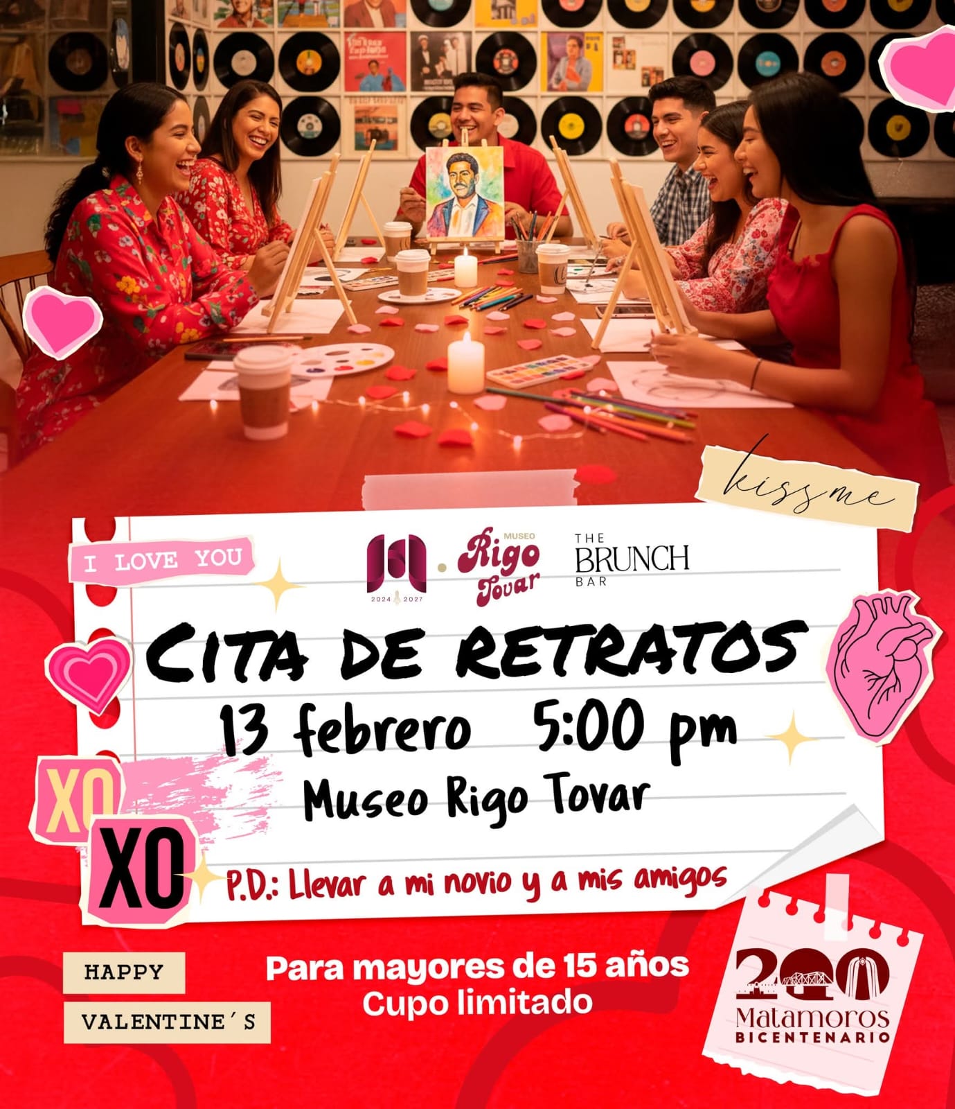 08 de febrero del 2026 Matamoros, Tam.- El Gobierno Municipal de Matamoros, encabezado por el alcalde Beto Granados, informó que la actividad cultural “Cita de Retratos”, que se realizará el próximo 13 de febrero en el Museo Rigo Tovar, ya cuenta con cupo lleno, gracias a la excelente respuesta de la ciudadanía que se registró para participar. Esta actividad se llevará a cabo a través de la Secretaría de Educación, Cultura y Deporte y la Dirección de Cultura Matamoros, en coordinación con el Museo Rigo Tovar, como…