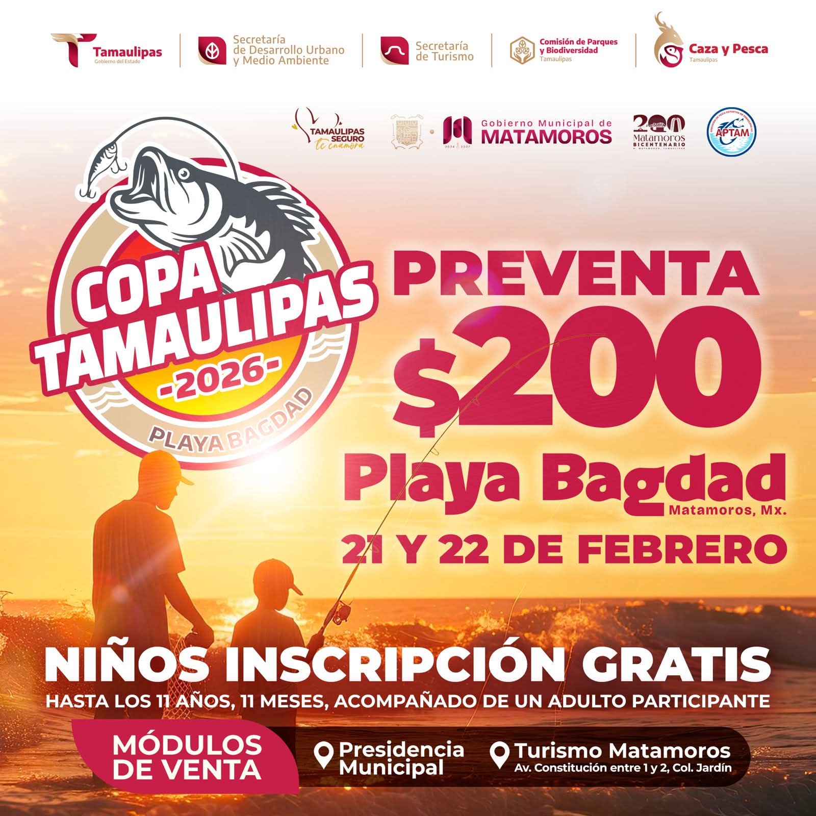 06 de Febrero de 2026 H. Matamoros, Tamaulipas.- La emoción de la pesca deportiva se vivirá en grande los días 21 y 22 de febrero en la Playa Bagdad, con la realización de la Copa Tamaulipas 2026, un evento que promueve la convivencia familiar, el turismo y el aprovechamiento responsable de nuestros espacios naturales. El alcalde de Matamoros, Beto Granados, destacó que este tipo de actividades fortalecen la identidad de la ciudad, impulsan la economía local y consolidan a Playa Bagdad como un referente para eventos deportivos…