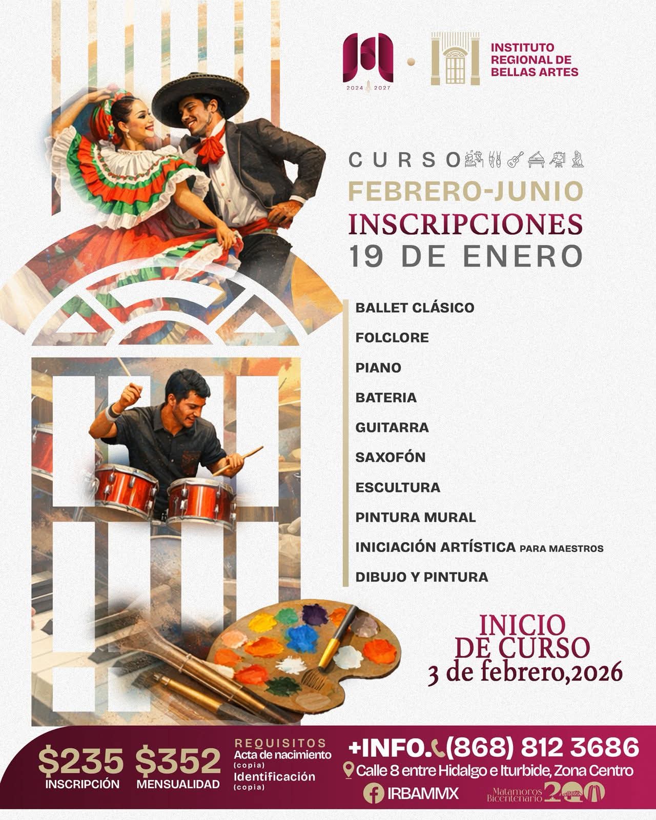 H. Matamoros, Tamaulipas.- El gobierno de Beto Granados hace una cordial invitación a la ciudadanía a inscribirse en los cursos artísticos que ofrece el Instituto Regional de Bellas Artes Matamoros para el periodo febrero–junio, una iniciativa que busca fortalecer el desarrollo cultural y creativo de niñas, niños, jóvenes y adultos en la ciudad. A través del Instituto Regional de Bellas Artes Matamoros, el gobierno de Beto Granados impulsa esta amplia oferta académica con el objetivo de fomentar la educación artística, brindar espacios de formación integral y promover el…