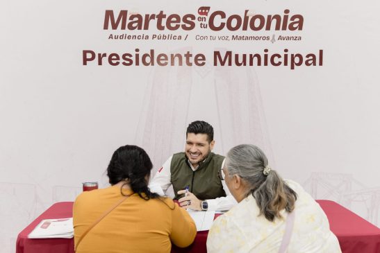H. Matamoros, Tamaulipas.- El alcalde Beto Granados encabezó el programa “Martes en Tu Colonia” en su edición número 57, ejercicio que consolida un diálogo directo entre la ciudadanía y el gobierno municipal, y que en esta ocasión atendió a más de 400 personas con diversos servicios.