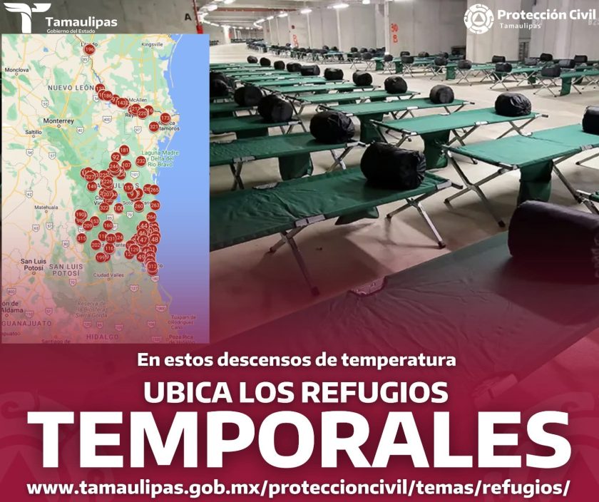 Para conocer la ubicación del refugio temporal más cercano, pueden consultar la pagina de Protección Civil Tamaulipas.
