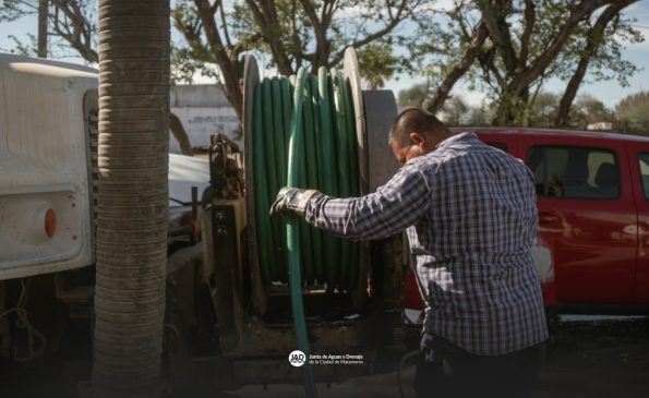 H. Matamoros, Tamaulipas.- Siguiendo las indicaciones del alcalde de Matamoros, Beto Granados, personal de la Junta de Aguas y Drenaje continúa realizando trabajos de limpieza y desazolve en diversas colonias de la ciudad, utilizando el camión vactor para garantizar el correcto funcionamiento de las líneas de drenaje sanitario.