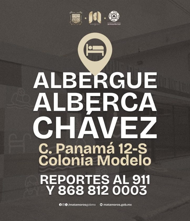 Nuestro albergue temporal de la Alberca Chávez estará abierto a partir de las 00:00 hrs. para la atención de quien lo requiera.