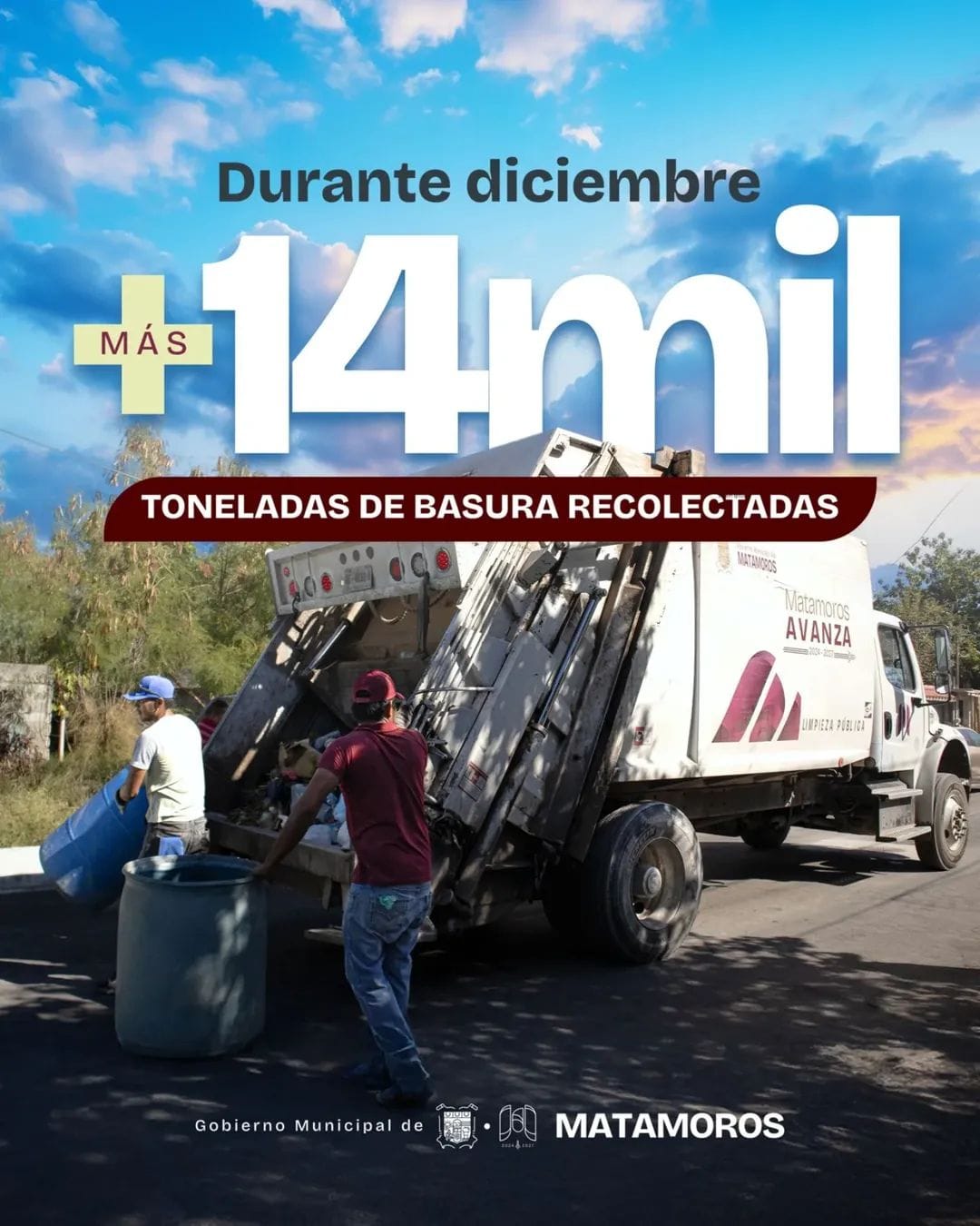 15 de diciembre del 2025 Matamoros, Tam.- El Gobierno de Beto Granados intensificó durante el mes de diciembre las acciones de limpieza en toda la ciudad, logrando la recolección de más de 14 mil toneladas de basura, la cifra más alta registrada en el año. Estos trabajos se realizaron en avenidas principales, colonias, plazas y diversos espacios públicos, como parte de una estrategia integral para atender el incremento de desechos generado en la temporada. Las labores diarias permitieron dar respuesta oportuna a los reportes de la ciudadanía…