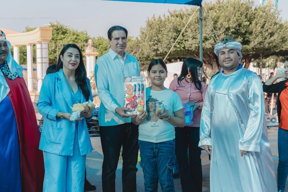 CD. VALLE HERMOSO Tmaualipas.- Con motivo de la celebración del Día de Reyes, este martes el presidente municipal de Valle Hermoso, Dr. Alberto Alanís Villarreal, acompañado de la Dra. Nadia Atienzo Rodríguez, presidenta del Sistema DIF Valle Hermoso, compartió la tradicional Rosca de Reyes frente a la Presidencia Municipal, en un ambiente de alegría y convivencia familiar. Cientos de familias Vallehermosenses se dieron cita para disfrutar de esta tradición, donde el alcalde y la presidenta del DIF repartieron de manera personal rebanadas de la rosca, así como juguetes…