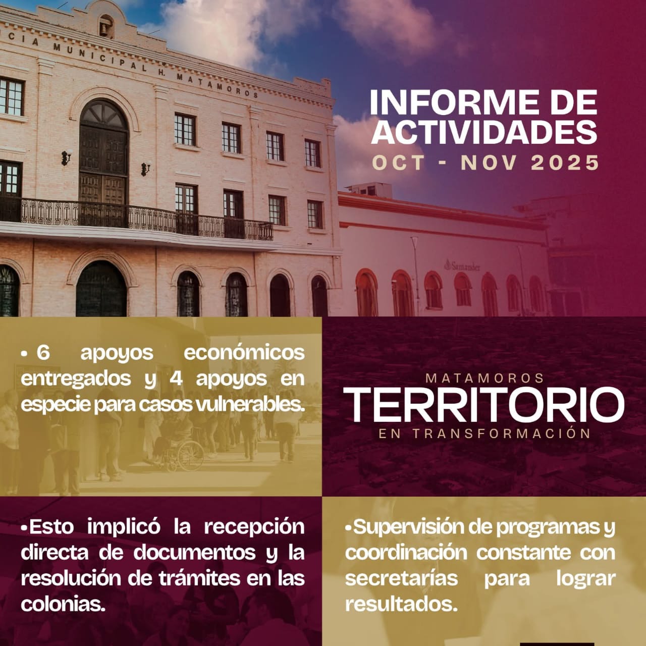 28 de Diciembre de 2025 H. Matamoros, Tamaulipas.- La Secretaría Particular, por instrucción del alcalde de Matamoros, Beto Granados, continúa consolidándose como el enlace directo entre la ciudadanía y la Presidencia Municipal, brindando atención oportuna y seguimiento puntual a las gestiones ciudadanas, con el firme compromiso de responder a las necesidades más sentidas de la población. Como resultado de este trabajo constante, se canalizaron 901 reportes a través de la aplicación Rigo, de los cuales 79 ya fueron atendidos; asimismo, se recibieron 128 reportes mediante el número…