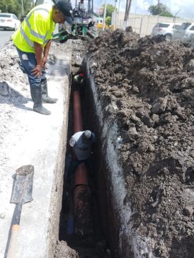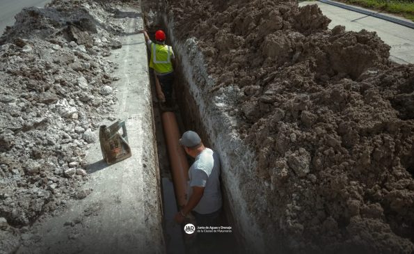 H. Matamoros, Tamaulipas.- El alcalde Beto Granados supervisó los avances de la obra de rehabilitación de la línea sanitaria en la carretera Sendero Nacional, donde se instala tubería de 12 pulgadas para mejorar el servicio y prevenir futuros colapsos.