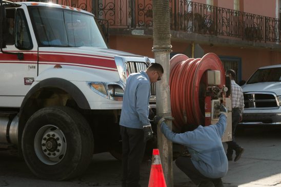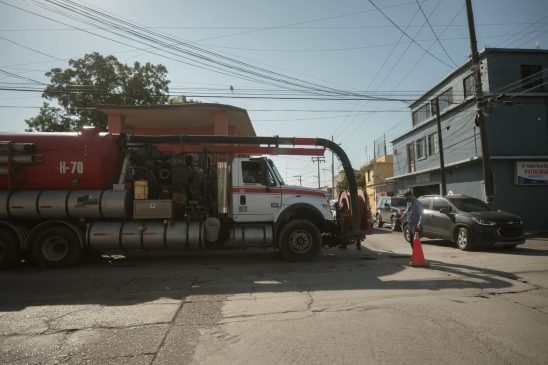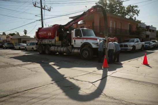 H. Matamoros, Tamaulipas.- El alcalde Beto Granados continúa impulsando acciones para mejorar el sistema de drenaje sanitario en la ciudad. Como parte de estos trabajos, el camión vactor de la Junta de Aguas y Drenajes realizó labores de mantenimiento en las líneas ubicadas en la calle Cuatro y Mina, en la zona Centro.
