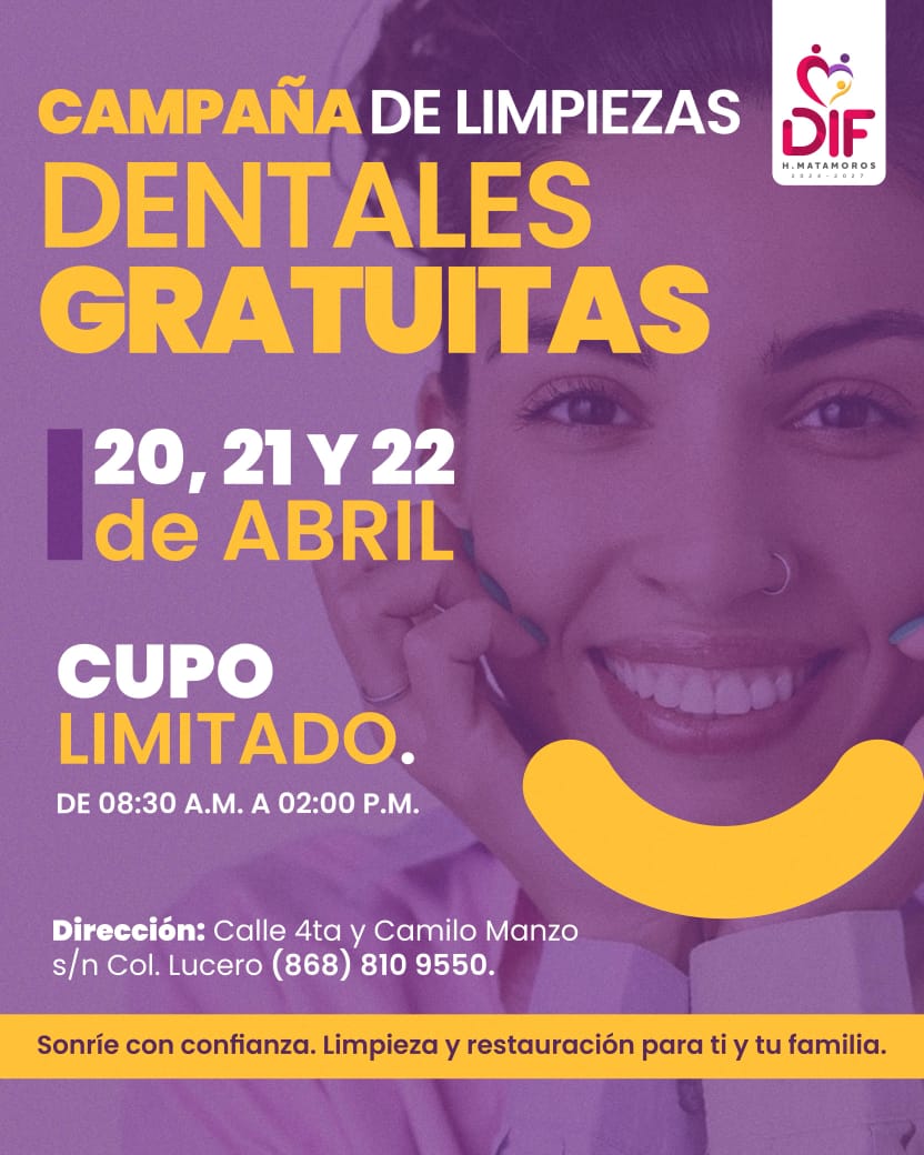 Leer más*DIF Matamoros anuncia campaña gratuita de limpieza y empastes dentales*