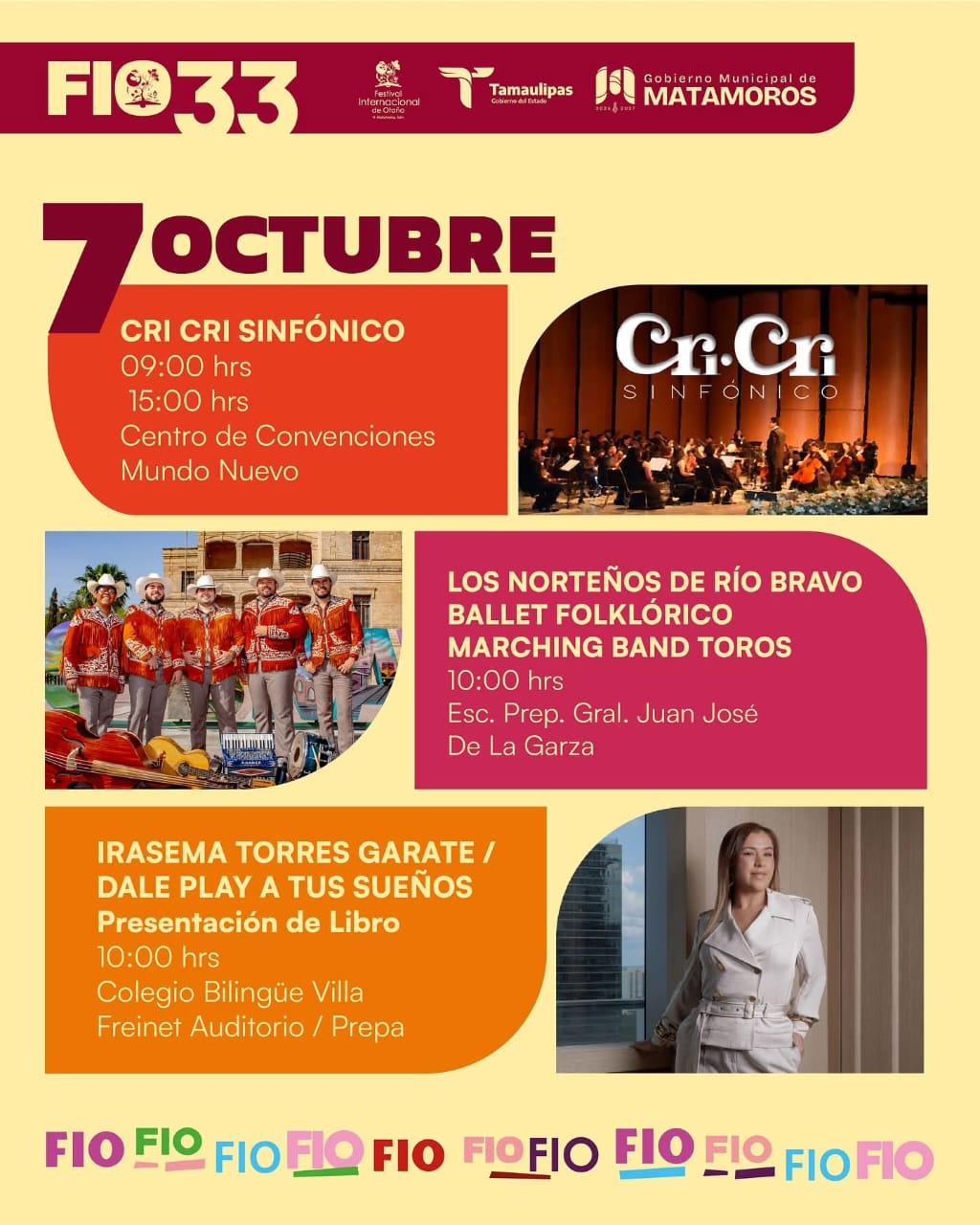 07 de Octubre de 2025 H. Matamoros, Tamaulipas.- Los matamorenses seguirán disfrutando del Festival Internacional de Otoño, una celebración que continúa llenando de arte, cultura y alegría cada rincón de nuestra ciudad. Por indicaciones del alcalde Beto Granados, este importante evento impulsa el talento local y fomenta el encuentro con expresiones artísticas de talla internacional, fortaleciendo así la identidad cultural de Matamoros. Durante los próximos días, las familias podrán disfrutar de presentaciones musicales, teatrales y dancísticas en distintos espacios públicos, consolidando a nuestra ciudad como un…