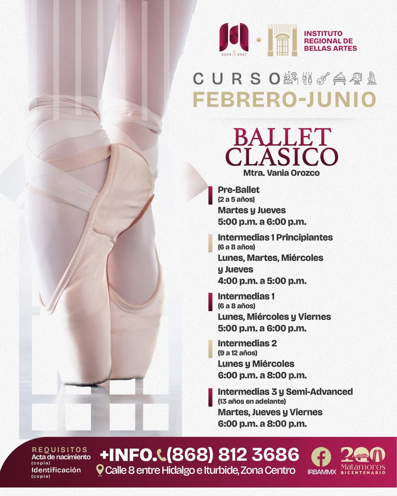 Leer más*Gobierno de Beto Granados anuncia apertura de inscripciones a talleres del Instituto Regional de Bellas Artes Matamoros*