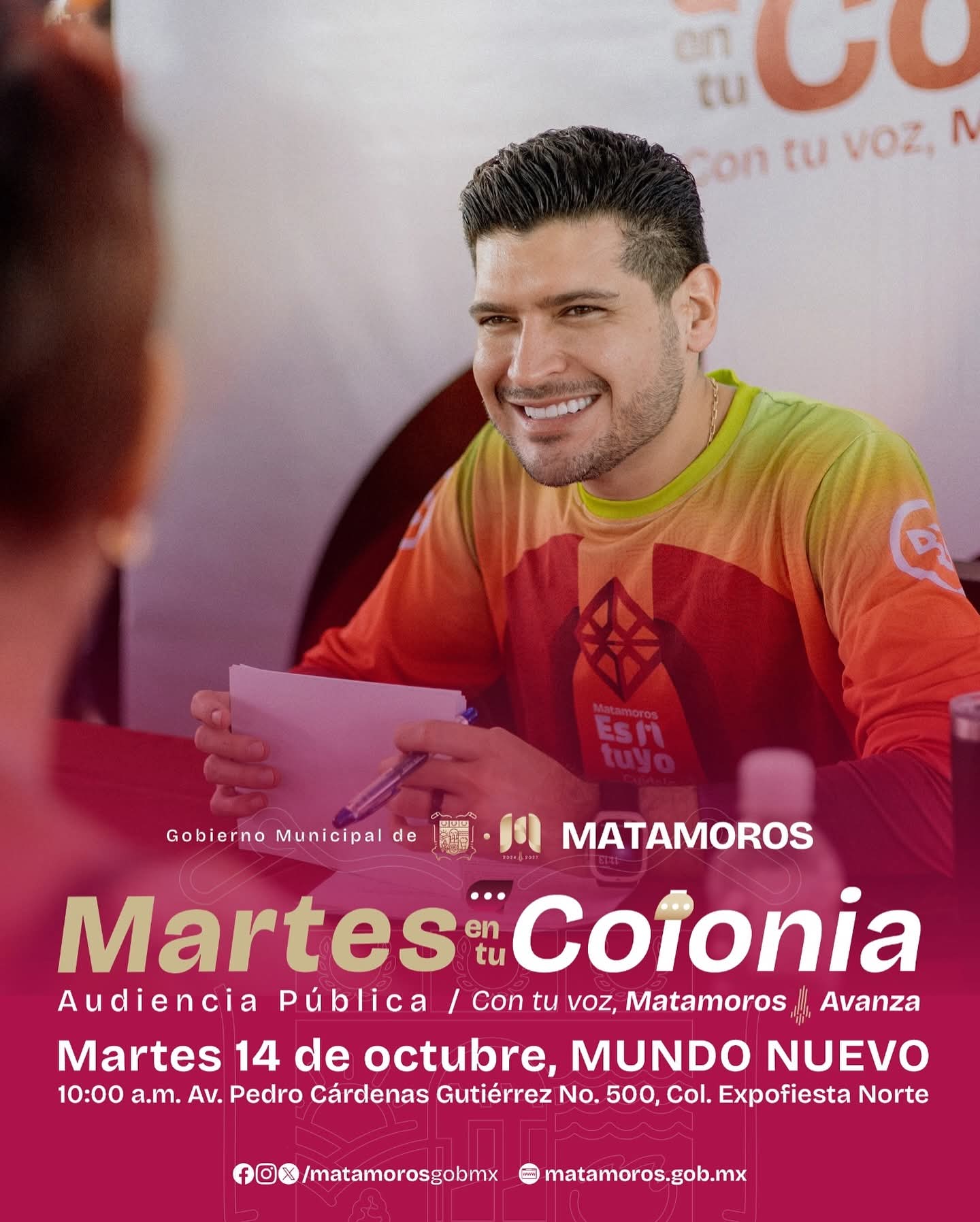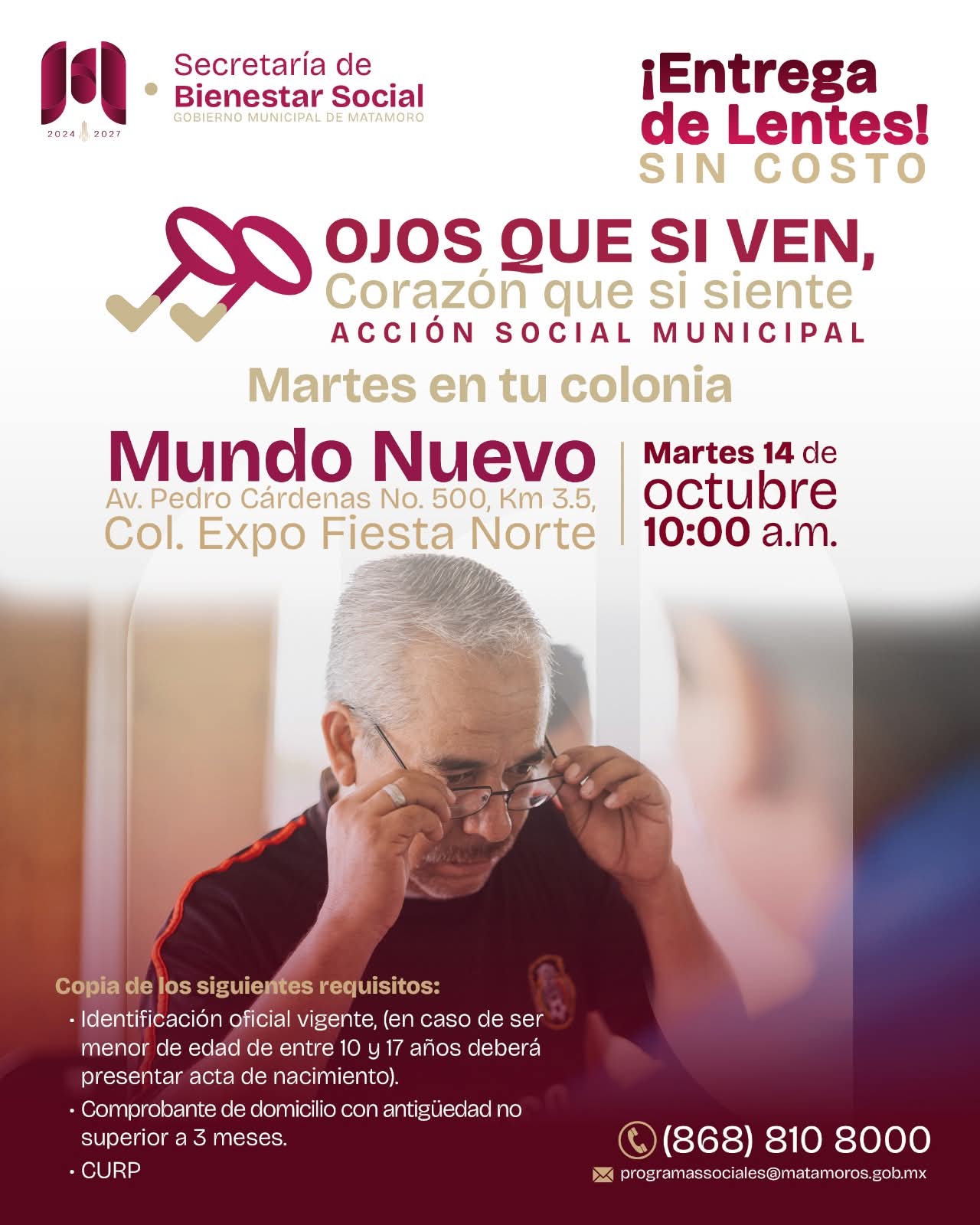 14 de Octubre de 2025 H. Matamoros, Tamaulipas.- El programa “Ojos que sí ven, corazón que sí siente” llega al Centro de Convenciones Mundo Nuevo, con la entrega gratuita de lentes para quienes más lo necesitan. Una acción impulsada por el Gobierno Municipal que preside el alcalde, Beto Granados que sigue transformando vidas, acercando servicios de salud visual a nuestra comunidad y mejorando la calidad de vida de niñas, niños, jóvenes y adultos mayores. Con este tipo de programas, el Gobierno de Matamoros reafirma su compromiso…