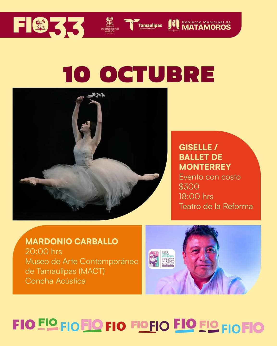10 de octubre 2025 Matamoros, Tam.- El Gobierno de Beto Granados invita a la ciudadanía a seguir disfrutando la magia del Festival Internacional de Otoño este 10 de octubre, una celebración que continúa llenando los escenarios de Matamoros con movimiento, talento y emoción. A través de diversas expresiones artísticas, el FIO 33 se consolida como un espacio donde convergen la creatividad, la identidad y la pasión por la cultura. Desde las funciones escolares hasta las presentaciones de ballet, teatro, danza, literatura y música, cada propuesta busca…