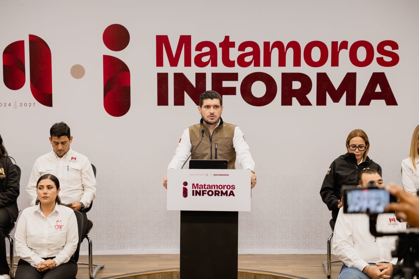 – Matamoros Informa, ejercicio de diálogo abierto encabezado por el alcalde 13 de abril de 2026 H. Matamoros, Tamaulipas.- En su acostumbrado ejercicio de rendición de cuentas sobre la actividad desarrollada por el Gobierno municipal, el alcalde Beto Granados respondió de frente a los representantes de los medios de comunicación, dejando claro que se sancionará conforme marca la ley a quienes se introduzcan en las lagunetas de la Junta de Aguas y Drenaje (JAD). Acompañado de su gabinete en pleno, el Presidente Municipal destacó que, tras…