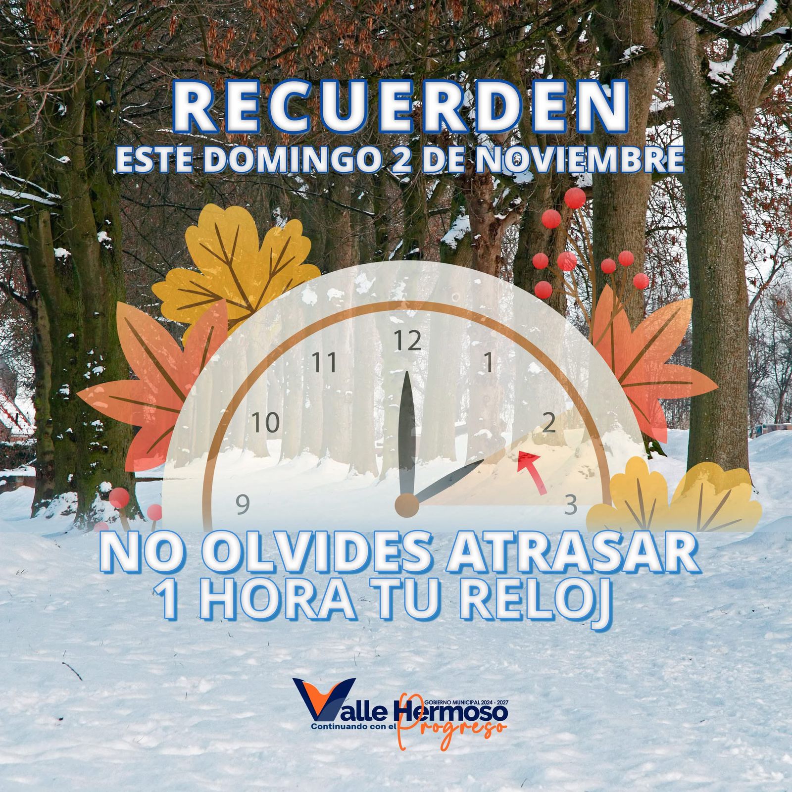 Este domingo 2 de noviembre inicia el Horario de Invierno. Se recomienda atrasar una hora el reloj antes de dormir el sábado 1 de noviembre, para iniciar la jornada del domingo con el horario correcto.