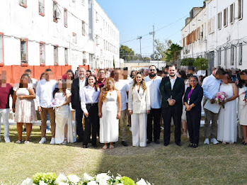 La ceremonia de matrimonios colectivos fue posible gracias a la sinergia entre la Secretaría de Seguridad Pública de Tamaulipas (SSPT), el Sistema DIF Victoria, la Dirección de Oficialías del Registro Civil y el Instituto de las Mujeres en Tamaulipas, y consistió en el enlace legal de 11 parejas integradas por PPLs y 10 entre residentes del CEDES Victoria y personas externas.