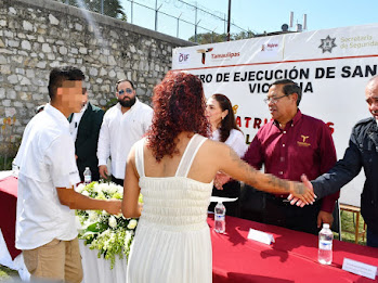 “La unión en pareja que celebramos en esta fecha cobra relevancia para continuar con su programa encaminado a su reinserción a la sociedad. En lo personal, me queda desearles una vida próspera en pareja, esperando que se encuentren orgullosos del paso que están dando el día de hoy”, manifestó el director del CEDES Victoria, Mario Alberto Hernández Aguirre.