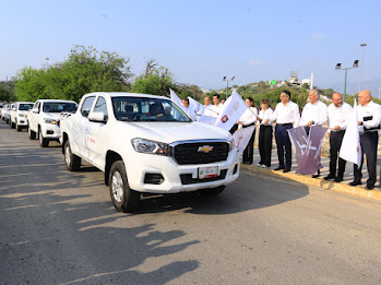 Al término de la ceremonia cívica, el gobernador realizó la entrega de un parque vehicular de 10 camionetas pick up y tres autos sedan para la operatividad de la Comisión Estatal para la Protección contra Riesgos Sanitarios (COEPRIS).