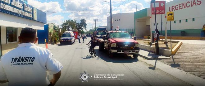 H. Matamoros, Tamaulipas.- Por instrucción del alcalde Beto Granados, la Secretaría de Seguridad Pública refuerza el Operativo Grúa en el perímetro del Hospital General “Dr. Alfredo Pumarejo”, con el propósito de mantener despejadas las zonas de emergencia.