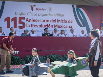 Presidida por el gobernador Américo Villarreal, la fiesta cívica transcurre en paz, con la participación de más de 3,500 estudiantes, militares y elementos de seguridad