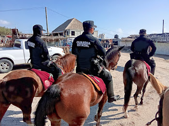 Soto la Marina, Tamaulipas.– En el marco del periodo vacacional de Semana Santa 2026, el Agrupamiento Montado de la Guardia Estatal puso en marcha un operativo especial de seguridad en la playa La Pesca, uno de los destinos turísticos más concurridos del estado.