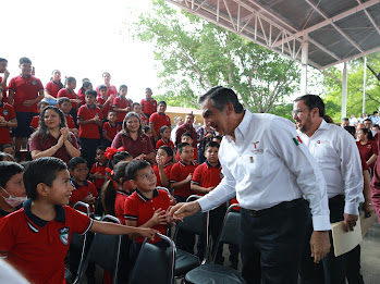 Al dar la bienvenida, el director de la escuela República de México, Emmanuel de la Garza García, agradeció todo el apoyo del gobernador y su respuesta a las peticiones planteadas, haciendo realidad el contar ahora con material deportivo, una cancha digna, la musicalización del himno de la escuela, pintura para el plantel y mobiliario escolar, además de una unidad de baños para niñas y niños y la terminación y equipamiento de un aula escolar.