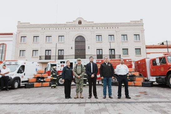 También se entregaron 40 trajes estructurales nuevos para bomberos, con un costo de 40 mil pesos cada uno, adquiridos gracias a la aportación mensual de un peso que realizan los usuarios de la Junta de Aguas y Drenaje de Matamoros.