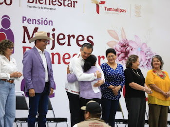 Durante la entrega simbólica a 30 de las dos mil beneficiarias presentes, acompañado por Luis Lauro Reyes Rodríguez, delegado de Programas Federales para el Desarrollo en Tamaulipas, y de Silvia Casas González, secretaria de Bienestar Social, el gobernador mencionó que, tal como lo ha señalado la presidenta, este apoyo es un reconocimiento a la contribución que durante muchos años han tenido las mujeres como protectoras de la familia y protectoras de los valores más valiosos de la formación e integración de la sociedad.
