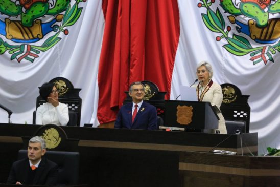 “Nos sentimos muy orgullosos de usted, de su obra, de su ejemplo, de su determinación para brillar y de llevar con usted a cada escenario, a cada aula, a cada recinto cultural, a cada estreno, la identidad y el orgullo de ser tamaulipeco”, expresó el gobernador en la ceremonia celebrada en la sede del Congreso Local.