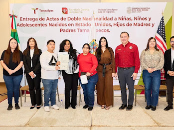 Gustavo Díaz Ordaz, Tamaulipas.- En cumplimiento a las políticas públicas orientadas a la protección y garantía de los derechos de las personas migrantes y sus familias, el Gobierno del Estado de Tamaulipas, a través del Instituto Tamaulipeco para los Migrantes (ITM), en coordinación con el Ayuntamiento de Gustavo Díaz Ordaz, llevó a cabo la entrega de 250 actas de doble nacionalidad a niñas, niños y adolescentes nacidos en los Estados Unidos de América, hijos de madre o padre originario del estado de Tamaulipas, en el marco de la conmemoración del Día Internacional del Migrante.