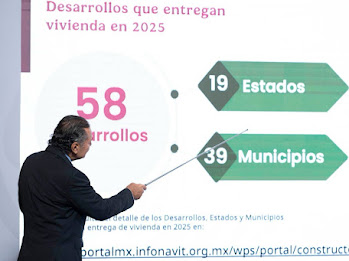 Así lo informó el director general de INFONAVIT, Octavio Romero Oropeza, durante su participación en la Mañanera del Pueblo, de la presidenta Claudia Sheinbum Pardo, donde precisó los avances de la construcción de las Viviendas para el Bienestar que se realizan en un total de 39 municipios, de 19 estados, y que suman 4 mil 871 viviendas.