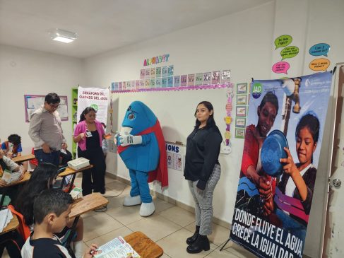 Durante la actividad, los estudiantes convivieron con la botarga “Chipi-Chipi”, quien llenó de alegría la plática mientras los niños y sus maestros conocían la importancia de cuidar el agua, un recurso natural indispensable para la vida y que debemos proteger para las futuras generaciones.
