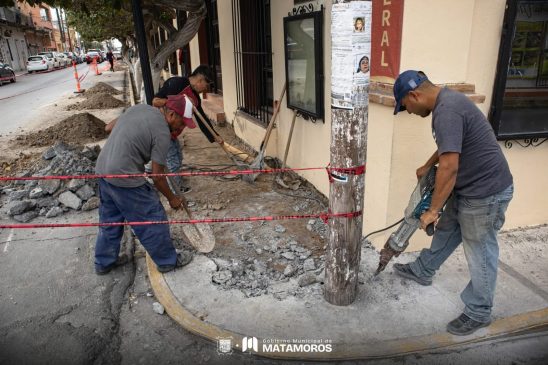 Matamoros, Tam.- El Gobierno de Beto Granados dio inicio a los trabajos de rehabilitación de banquetas en el Centro de la ciudad, con el objetivo de avanzar hacia espacios más accesibles, seguros e incluyentes para todas y todos los ciudadanos.