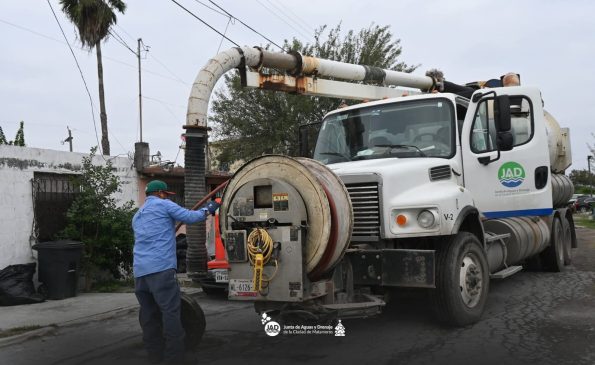 H. Matamoros, Tamaulipas.- Con el respaldo del alcalde Beto Granados, se continúan realizando acciones de limpieza y desazolve a través del camión vactor de la Junta de Aguas y Drenajes, en distintos sectores de la ciudad, con el objetivo de mejorar el funcionamiento de la red de drenaje y prevenir afectaciones a las familias.