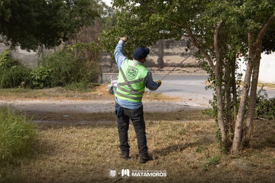 Matamoros, Tam.- El Gobierno de Beto Granados llevó a cabo labores de limpieza y mantenimiento en el área verde de la colonia Lucio Blanco, a través de la cuadrilla Renace, con el propósito de conservar en óptimas condiciones este espacio público utilizado diariamente por niñas, niños y familias de la zona.