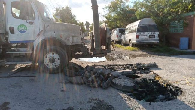 Matamoros, Tam.- El Gobierno de Beto Granados informó que todos los días se realizan acciones con el camión vactor para la limpieza de pozos de visita en distintos puntos de la ciudad. En esta ocasión, se atendió la calle Avestruz con Avenida Las Torres, en la colonia Las Torres, donde se encontraron piedras, llantas y palos que obstruían el flujo de las aguas negras.