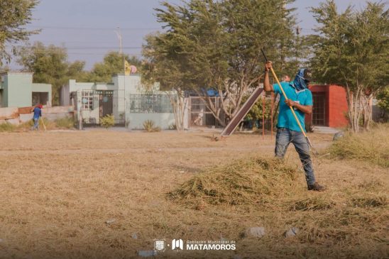 H. Matamoros, Tamaulipas.- El gobierno de Beto Granados continúa intensificando las labores de conservación urbana mediante las cuadrillas de Espacios Públicos, con el objetivo de mantener en óptimas condiciones las áreas que diariamente utilizan las familias de la ciudad. Estas acciones forman parte del compromiso de la administración municipal por garantizar entornos limpios, seguros y funcionales para todas y todos.