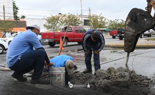 H. Matamoros, Tamaulipas.- En cumplimiento a la instrucción del alcalde de Matamoros, Beto Granados, personal de las cuadrillas de la Junta de Aguas y Drenaje de la ciudad de Matamoros trabaja de manera permanente en la detección y reparación de fugas de agua potable, con el objetivo de mejorar el servicio y cuidar el recurso hídrico en los distintos sectores del municipio.
