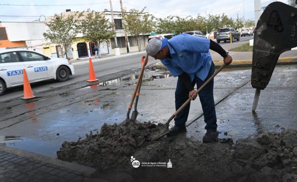 H. Matamoros, Tamaulipas.- En cumplimiento a la instrucción del alcalde de Matamoros, Beto Granados, personal de las cuadrillas de la Junta de Aguas y Drenaje de la ciudad de Matamoros trabaja de manera permanente en la detección y reparación de fugas de agua potable, con el objetivo de mejorar el servicio y cuidar el recurso hídrico en los distintos sectores del municipio.