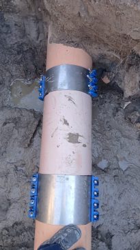Matamoros, Tam.- El Gobierno de Matamoros, encabezado por el alcalde Beto Granados, a través de la Junta de Aguas y Drenaje de Matamoros, realizó trabajos de reparación en una línea de presión de 16 pulgadas ubicada en la calle Rincón de las Brisas y Brecha 30 del Fraccionamiento Rinconada de las Brisas. Estas labores se efectuaron con el objetivo de garantizar un servicio eficiente y continuo a las familias del sector.