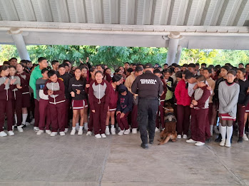 En el operativo participaron los manejadores de los perros, quienes brindaron labores de seguridad perimetral durante el desarrollo de la actividad. Este tipo de acciones forman parte de la estrategia de proximidad social y prevención del delito que implementa la Guardia Estatal en planteles educativos, orientada a inhibir conductas de riesgo y reforzar la seguridad.