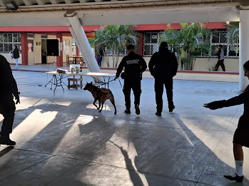 En el operativo participaron los manejadores de los perros, quienes brindaron labores de seguridad perimetral durante el desarrollo de la actividad. Este tipo de acciones forman parte de la estrategia de proximidad social y prevención del delito que implementa la Guardia Estatal en planteles educativos, orientada a inhibir conductas de riesgo y reforzar la seguridad.