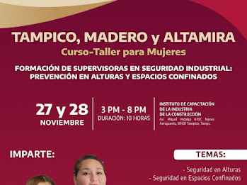 Tampico, Tamaulipas.- La Secretaría del Trabajo y Previsión Social de Tamaulipas anunció la realización del Curso-Taller para Mujeres “Formación de Supervisoras en Seguridad Industrial: Prevención en Alturas y Espacios Confinados”, dirigido a mujeres de Tampico, Ciudad Madero y Altamira que buscan profesionalizarse y fortalecer sus competencias dentro del sector industrial.