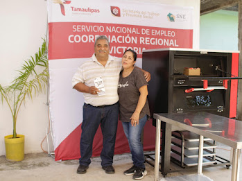 Ciudad Victoria, Tamaulipas.- La Secretaría del Trabajo y Previsión Social, a través del Subprograma Tamaulipas Emplea, Estrategia Tamaulipas Equipa, realizó la entrega de apoyos en especie a los negocios “Empanadas Vero” y “Panadería María Elena Fuentes”, ubicados en Ciudad Victoria, con el objetivo de fortalecer su actividad productiva y promover el autoempleo en la capital tamaulipeca.